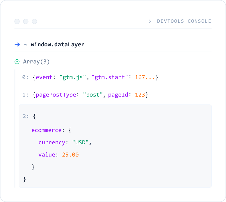 Visit any page and confirm window.dataLayer is present